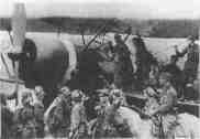![]() He-111 из состава KG 4, сбитый под Ржевом. Лето 1942 г. (РГАКФД) |