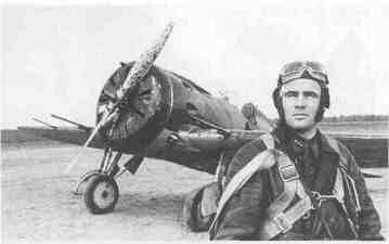 ![]() Ст. л-т. ГС. Жуйков на фоне И-16 тип 17 после ряда удачных воздушных боев. Ленинградский фронт, лето 1941 г. (РГАКФД) |