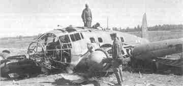 ![]() He-111 из состава KG 4, сбитый под Ржевом. Лето 1942 г. (РГАКФД) |